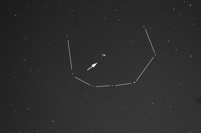 van 20 seconden. De opnames werden gemaakt op Apr. 10.728 UT met een 105 mm (f/5.6) telelens. Op het moment van de ontdekking